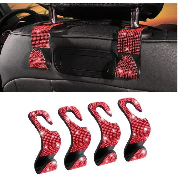 Easy to Use: Package includes 4 bling hooks, each measures 1.4*4.33" in length and width. Installation can be completed in seconds, no need to drill or remove seat. Simply attach to the headrest rod. With rotatable design, based on your convenience, you can rotate the hook to the seat front as well. Please make sure that your car seat headrest is retractable before ordering or these hooks may not suitable for your car.