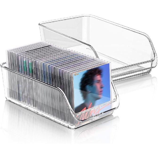 CD Storage Case 2 Pack, Clear CD Organizer, Hold Up To 48 Jewelry Cases