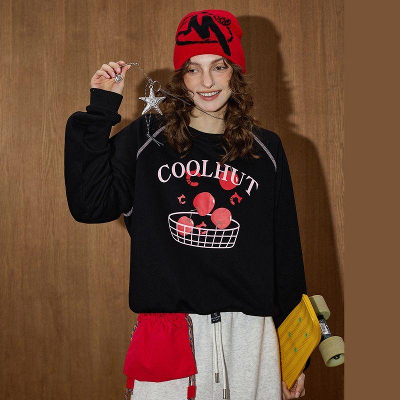 Coolhut Black Autumn New Loose Fit Slimming Age-Reducing Fashionable Versatile Round Neck Pullover Women's Casual Sweatshirt