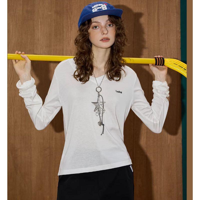 Coolhut2025 Autum Women's White Fashionable Simple Versatile Loose Versatile T-Shirt