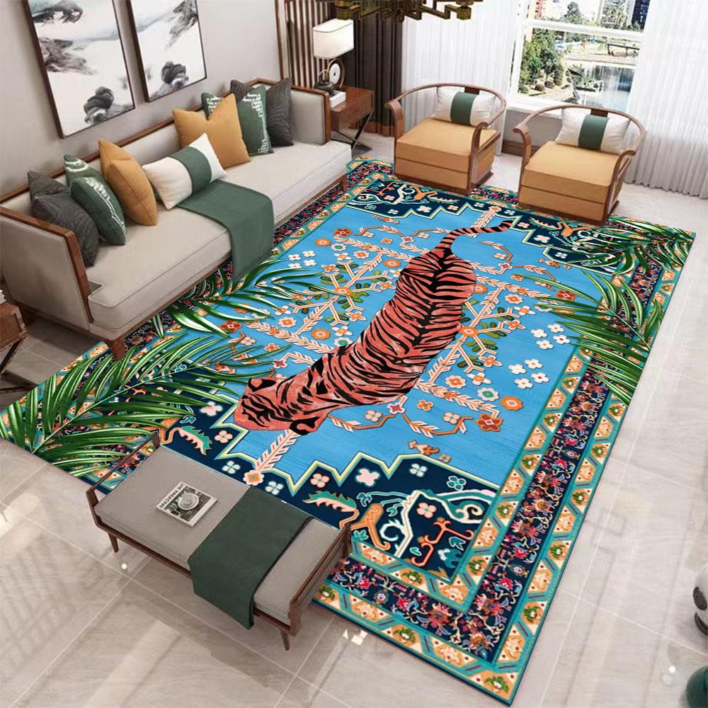 Large Realistic Tiger Floral Pattern Blue Living Room Carpet Decorative Indoor Area Rug Fit Gray Sofa Window Home Decoration Mat