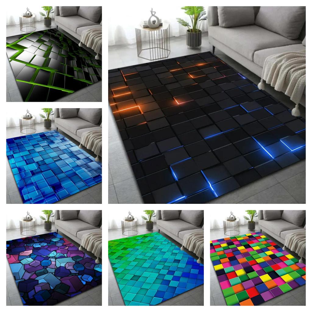 Bright Playful Multi-Color Block Area Rug - Premium Memory Foam Non-Slip Floor Mat for Living Room Bedroom Vibrant Home Decor