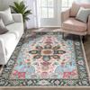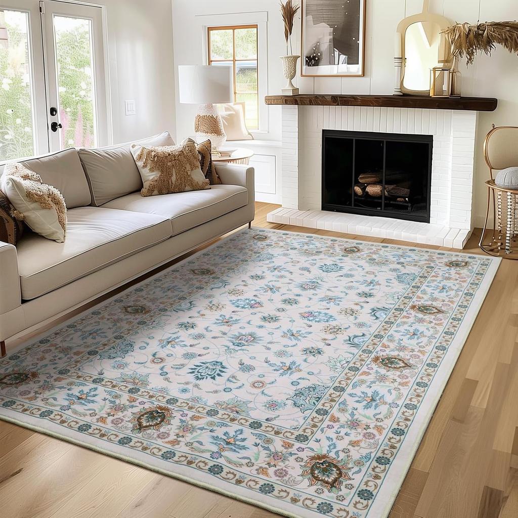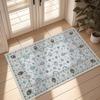 Non-Slip Boho Small Area Rugs for Entryway, Machine Washable Vintage Rug, Indoor Floral Print Carpet for Home Decor