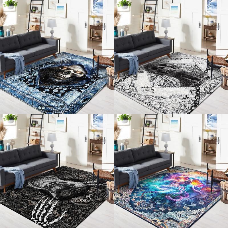 Teppich mit Horror-Skelettmuster für Zuhause Wohnzimmer Schlafzimmer Sofa Fußmatte Dekor Großer Flächenteppich Rutschfeste Bodenmatte Mode