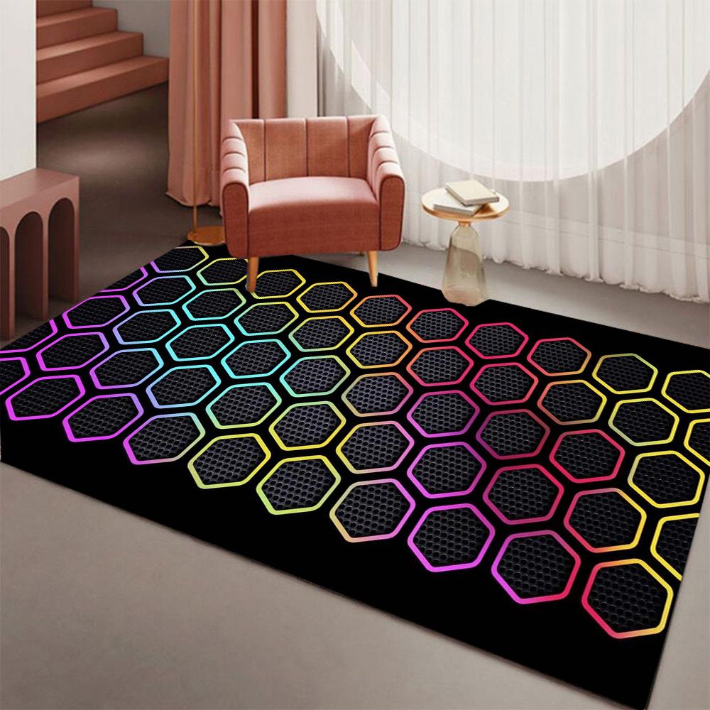 Sechseck Gamer Teppichmatte Neonlichtmuster PC Gaming Teppich Rutschfeste Bodenmatte für Schlafzimmer Büro Heimdekor Indoor Teppich