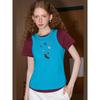 Coolhut American Retro Fashion Casual New Style Contrasting Color Stitching Fake Two-Piece Women's Round Neck T-Shirt