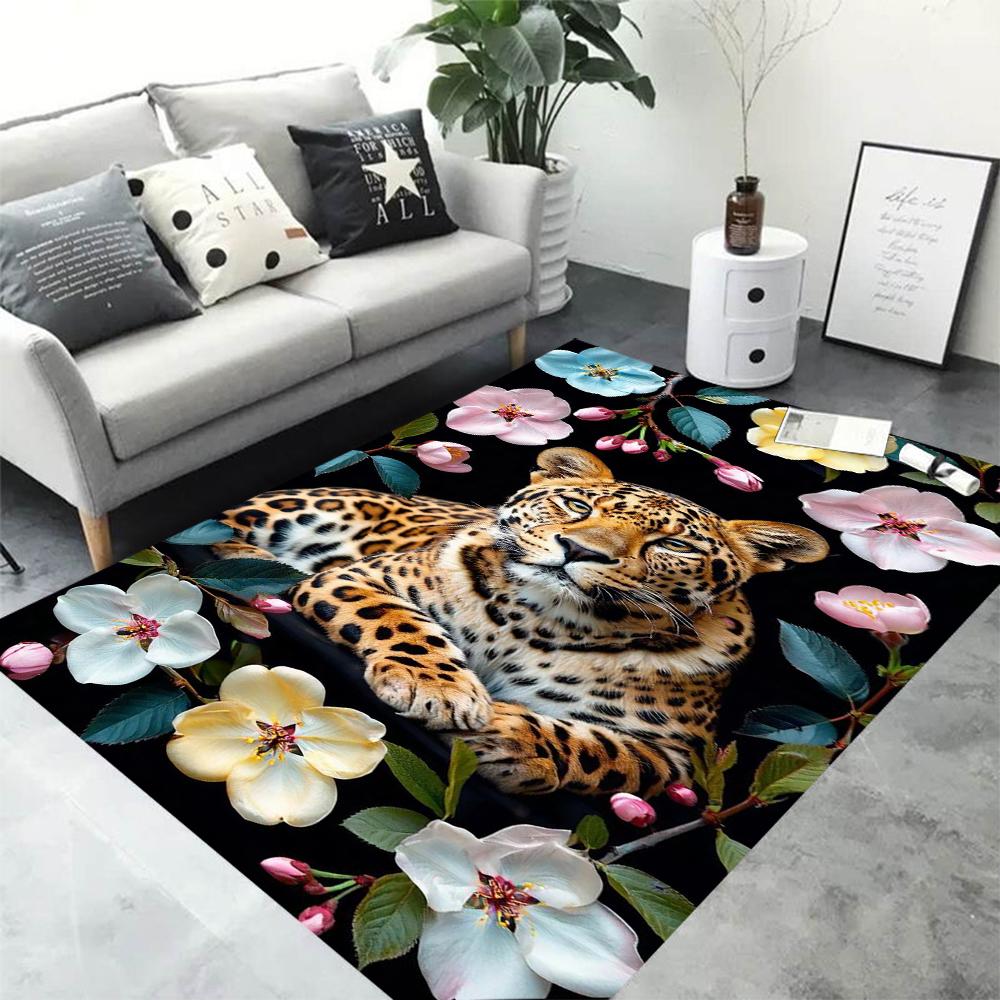 3D Tiger Leopard Gepard Löwe Wolf Bereichsteppich, Teppich für Wohnzimmer Schlafzimmer Sofa Fußmatte Küchendekor Kind Rutschfeste Bodenmatte