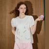 Coolhut Tencel Letter Embroidery Lace Patchwork Puff Sleeve Lightweight Babydoll Top 2025 Summer Shirt for Women