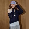Coolhut V-Neck Simple Commuter Style Navy Blue Long-Sleeved T-Shirt 2025 Autum New Women's Knitwear Sweater