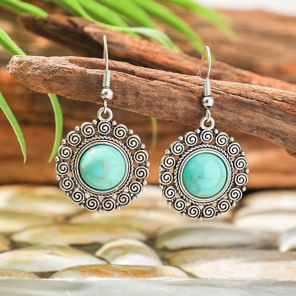 Böhmische ethnische Ohrringe Türkis geometrische hohle Fransenohrringe Ohrringe Frauen