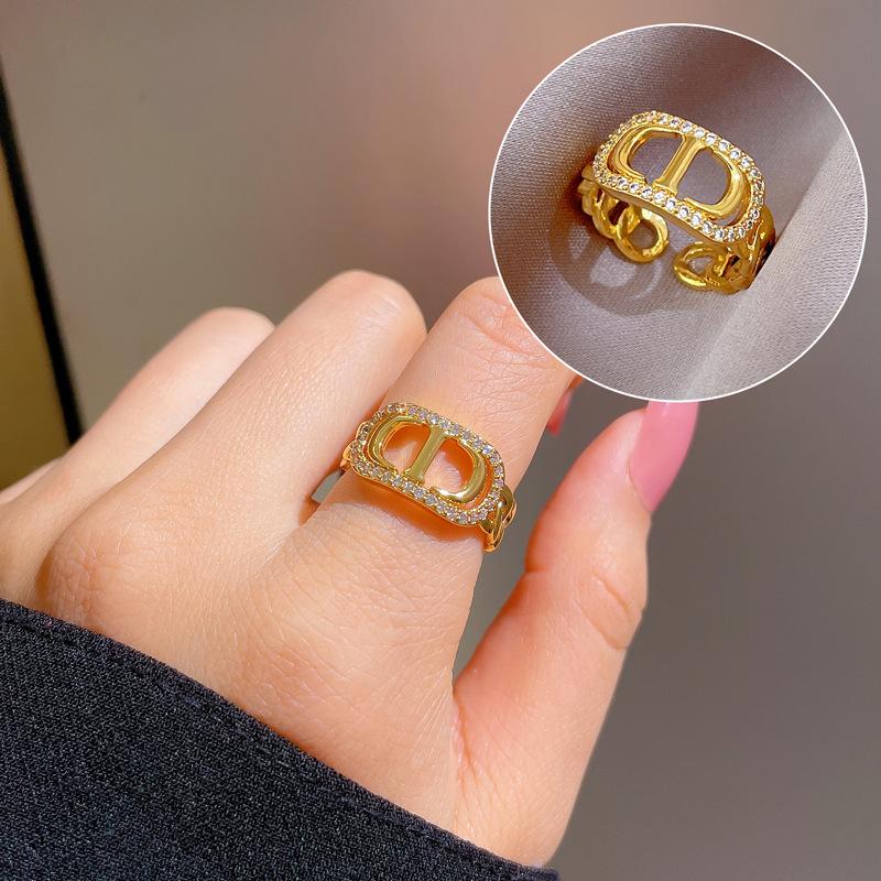 Echter Gold Partnerring, Modischer schlichter Ring für Damen, Verstellbarer offener Ring, Kaltes CD-Design