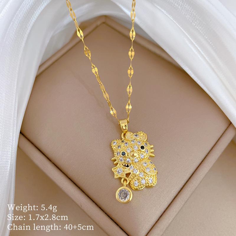 Star Cat Zircon Light Luxury Temperament Gorgeous Full Diamond Necklace Female Versatile Collarbone Chain Titanium Steel Chain