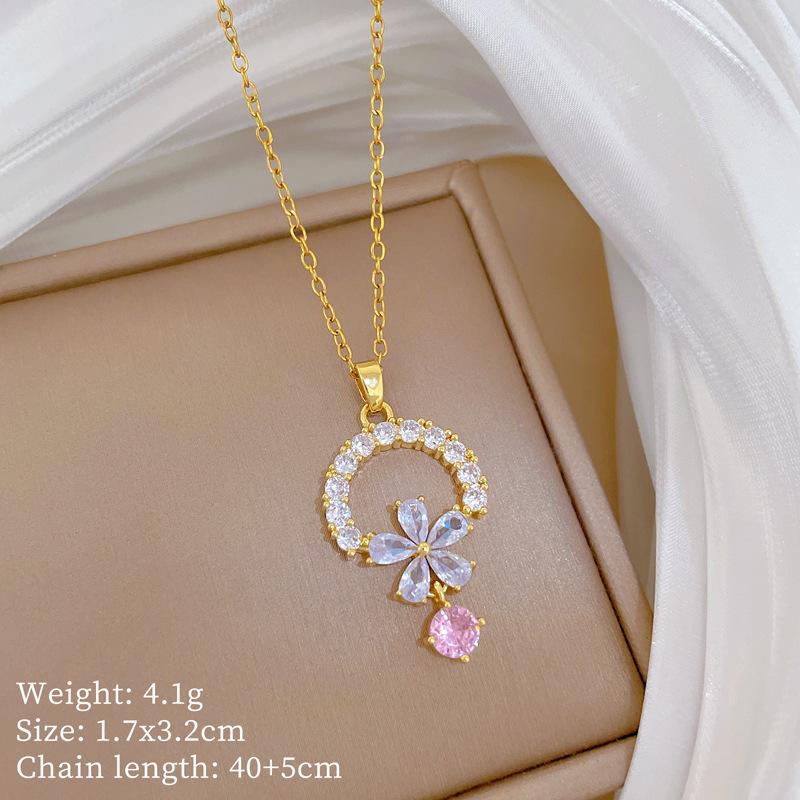 Titanium Steel, Round Flower Fringed Zircon Temperament Gorgeous Full Diamond Necklace Female Versatile Collarbone Chain Titanium Steel Chain