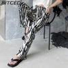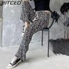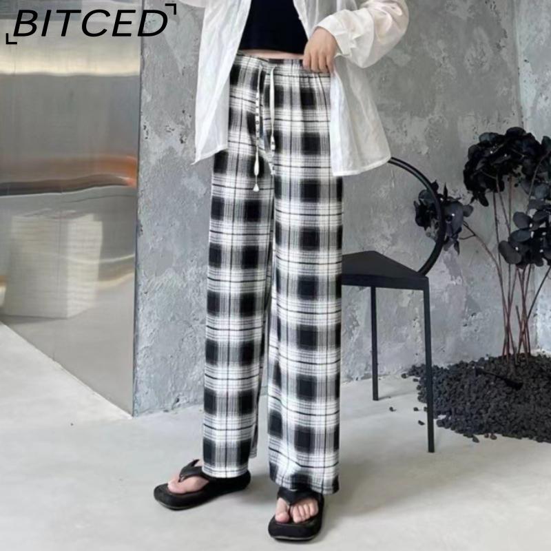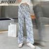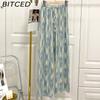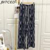 BITCED Vintage-Style Wide-Leg Trousers for Women Spring/Autumn Striped Tie-Dye High-Waisted Straight-Leg Casual Trousers with Drape