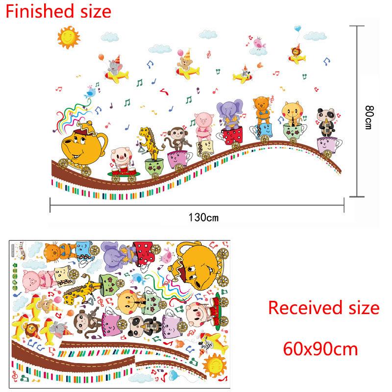 Cartoon Animal Cup Musical Note Wall Stickers Removable PVC Wall Decals for Kids Room Nursery Kindergarten Decor