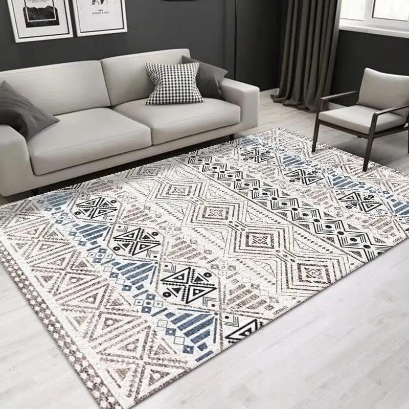 Moroccan Ethnic Style Floor Mats Durable for Living Room Bedroom Coffee Table Sofa Non-Slip Washable Large Carpet Home Decor