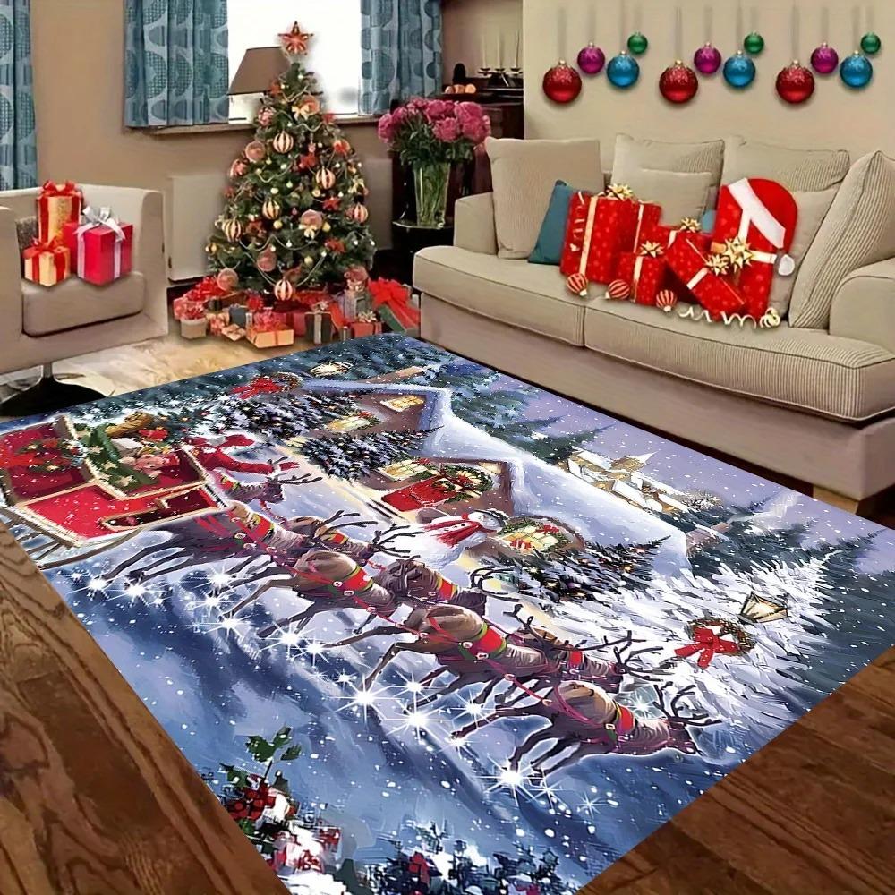 Weihnachts Schneemann Muster Teppich mit Geschenken Schneeflocken Lebendiger Festlicher Dekorativer Teppich für Wohnbereich