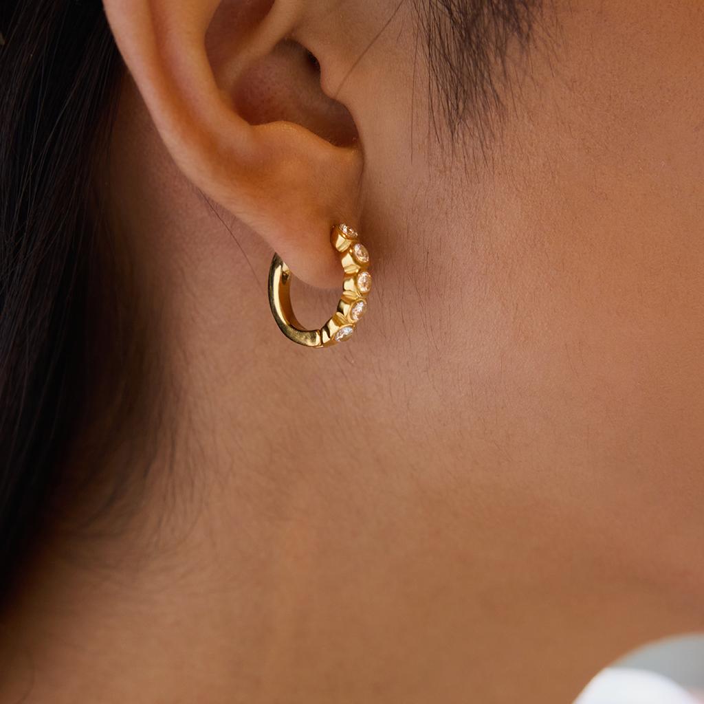 Leichter Luxus, High-End 8K Gold, runde Zirkon-Ohrringe, Ohrringe und Schmuck.