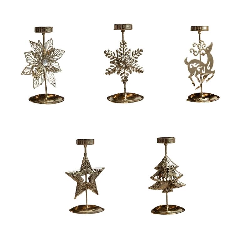 Iron Candle Holder Christmas Flower Star Snowflake Designs Vintage Metal Tealight Candle Stand Candlestick Table Decors