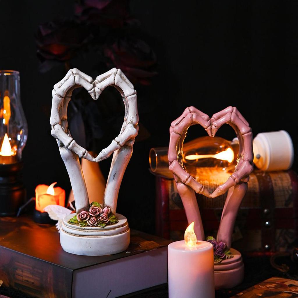 Kreative Geste Desktop-Figur Harz Schädel Hand Herz Skulptur Halloween Wohnzimmer Schlafzimmer Grotesk Gotisch Heimdekor