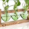 Creative Colorful Heart Shaped Transparent Glass Vase Wooden Frame Hydroponic Vase Container Home Ofice Table Decoration