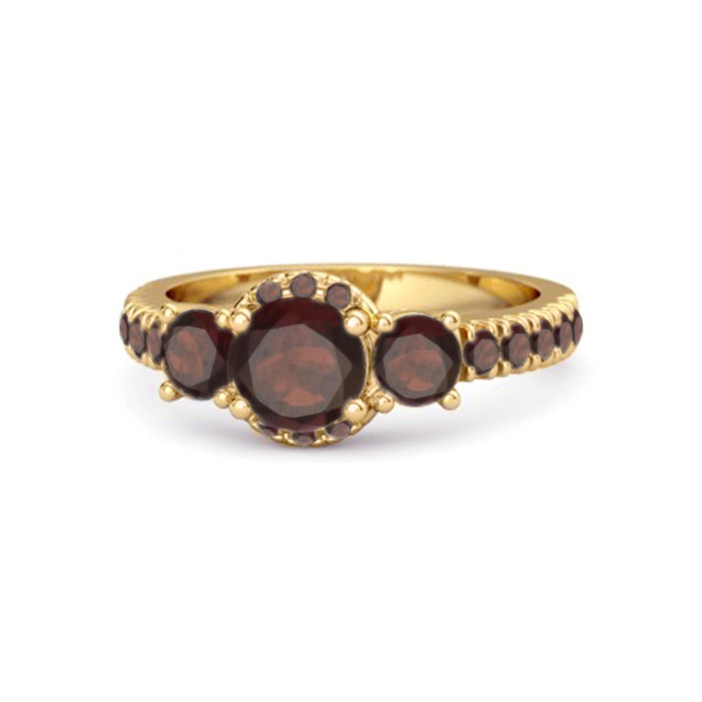 Garnet Three- 925Stone Halo pave Band Ring - 925 Sterling Silver Gold Vermeil