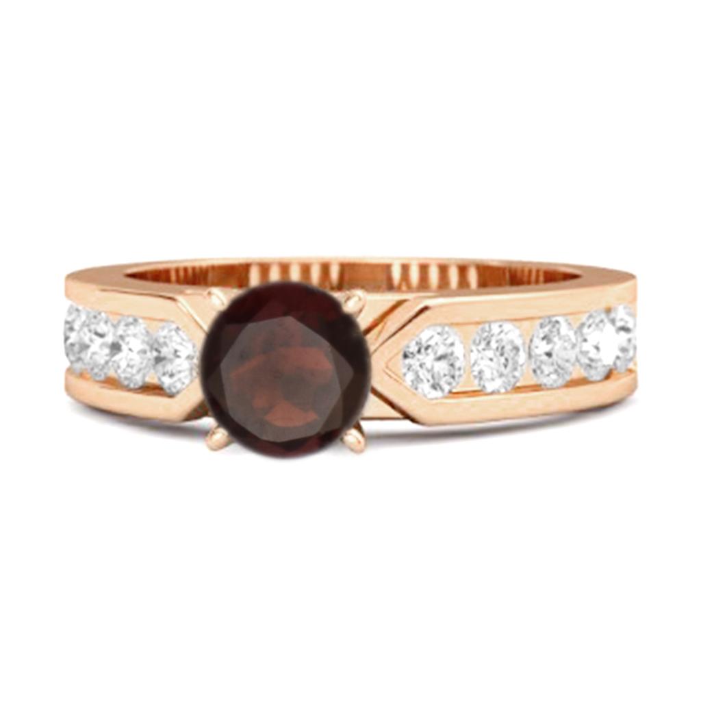 Granat Runder Solitär Statement Ring - 925 Sterlingsilber Roségold Vermeil
