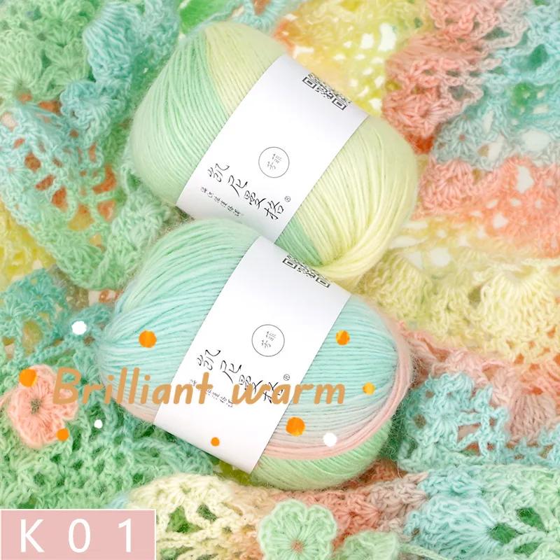 50g/Knäuel Regenbogen Baumwollgarn und Leinen Farbverlauf Handhäkeln Langabschnitt gefärbt Hand DIY Häkeln Schal Schal Zopfgarn Faden