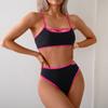 Vintage-Badeanzug für den Strandurlaub, sexy Bikini-Badeanzug für Damen, rückenfrei, Farbblock-Badeanzug mit geteilten Ärmeln, feine Nähte in verschiedenen Farben, Strandmode