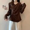 Mode Damen Langarm German Velvet Oberteile für Herbst Neuer Stil Unregelmäßiger Träger V-Ausschnitt Rechte Schulter T-Shirt Trendy
