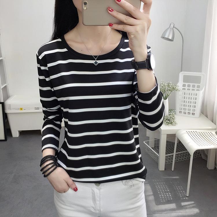 Damen Gestreiftes Rundhals Langarm Slim-Fit T-Shirt für Frühling, Sommer und HerbstGenießen Sie mühelosen Stil mit diesem Slim-Fit T-Shirt, perfekt für Frühling, Sommer und Herbst. Das T-Shirt ist aus weichem und leichtem Kunstseidenmaterial gefertigt und bietet eine bequeme und schmeichelhafte Passform. Das Streifenmuster verleiht einen Hauch von klassischem Design, während die langen Ärmel und der runde Ausschnitt einen vielseitigen Look für verschiedene Anlässe bieten.. Freuen Sie sich über eine schicke und stilvolle Ergänzung Ihrer Garderobe mit diesem Must-have-Stück.
