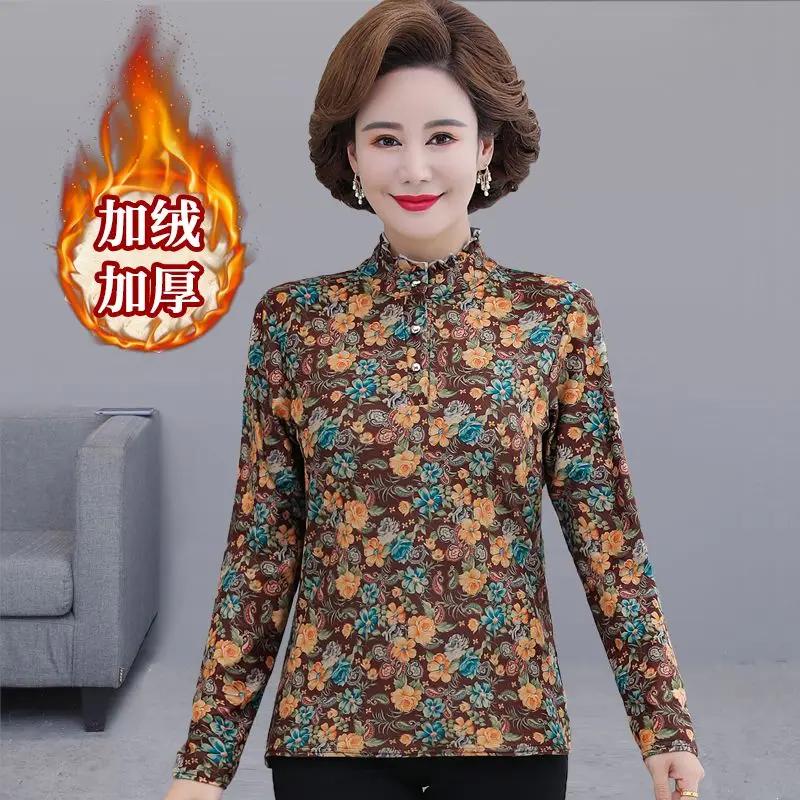 Neuer Stil T-Shirt für Damen mit Samt und verdicktem Kragen Locker geschnitten Stil für mittlere und ältere Jahre Unterhemd