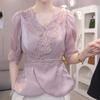 Französisches Süßes Spitzen-Spleiß Kurzarmhemd Damen Sommer Neue Mode Vielseitiges Oberteil
