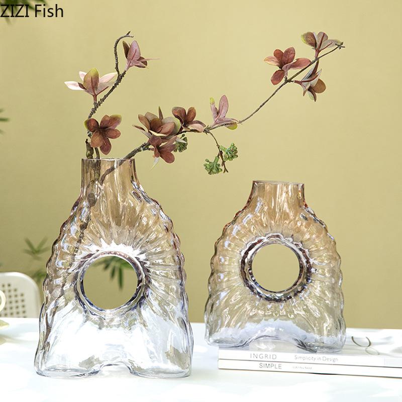 Hollow Transparent Glass Vase Hydroponics Plant Pots Table Decoration Flower Arrangement Floral Vases Room Aesthetic Decor