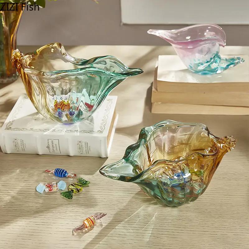 Colorful Conch Candy Jar Fruit Tray Creative Transparent Glass Conch Storage Basket Room Aesthetic Decor Desktop Storage Tray