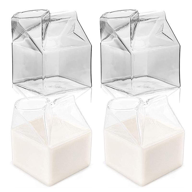 4 PCS Glass Milk Carton, Clear Square Mini Cup Cocktail Glass for Milk, Coffee, Water, Juice, Beverages