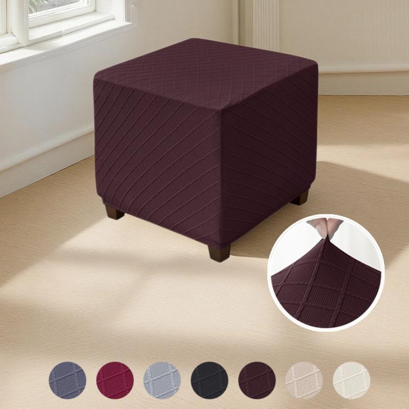 Jacquard Square Ottoman Stool Cover Elastic All-Inclusive Footrest Slipcover Anti-Dirty Footstool Case Protector For Living Room