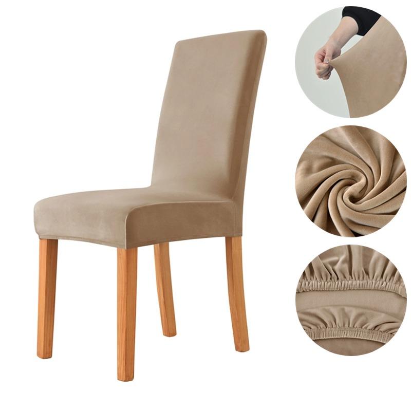 1Pc Velvet Dining Chair Cover Stretch Chair Covers Elastic Non Slip Seat Slipcovers For Living Room Kitchen Office Wedding