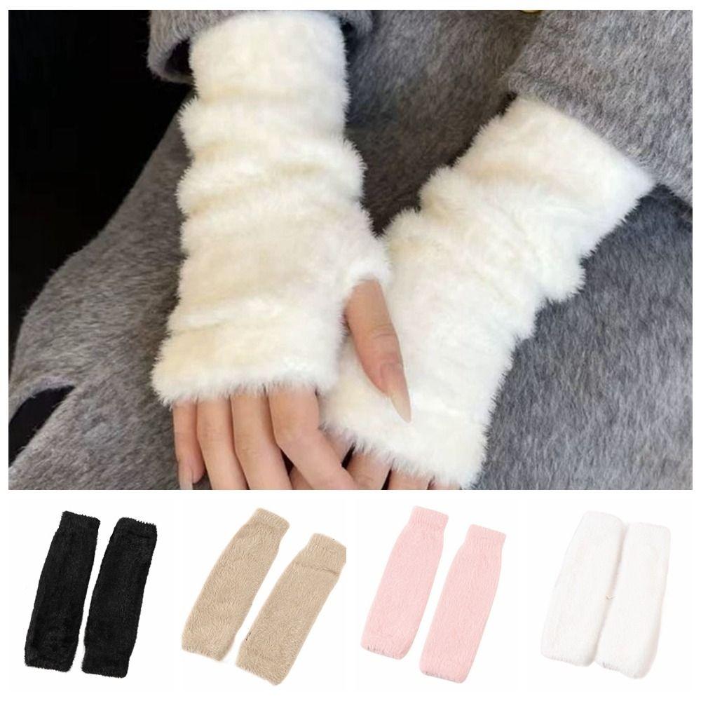 Loch Wollhandschuhe Einfarbig Lange Fingerlose Ärmel Langer Handgelenkschutz Gestrickte Warme Ärmel JK