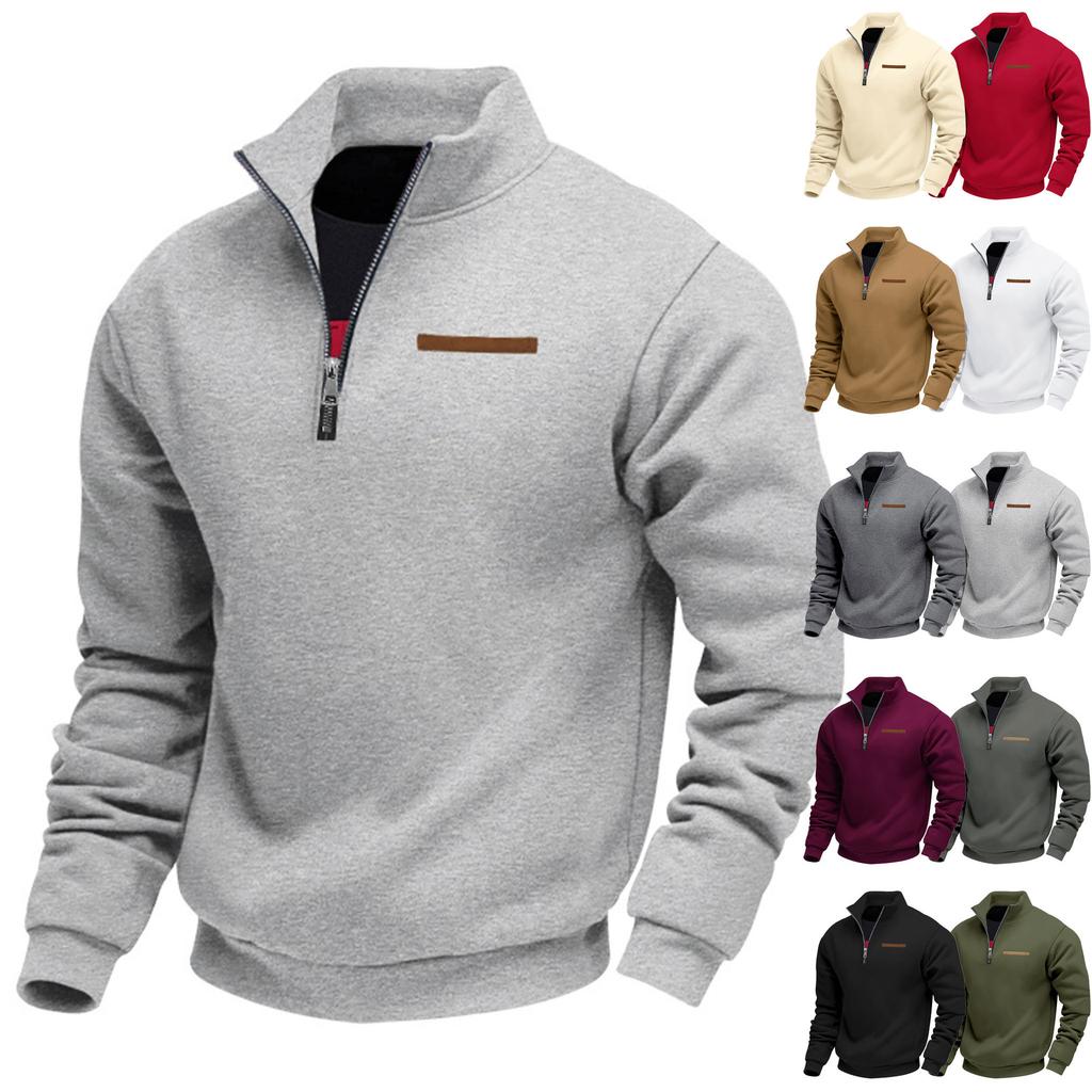 Übergröße Frühling/Herbst Fleecegefüttert Halbreißverschluss Übergroß Stehkragen Pullover Einfarbig Lässiges Sweatshirt für Herren