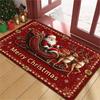 Christmas Santa Sleigh Carpet Rug "Merry Christmas" Mat Holly Berries Bell Decoration Mat for Home Decoration Festive Floor Rug