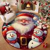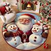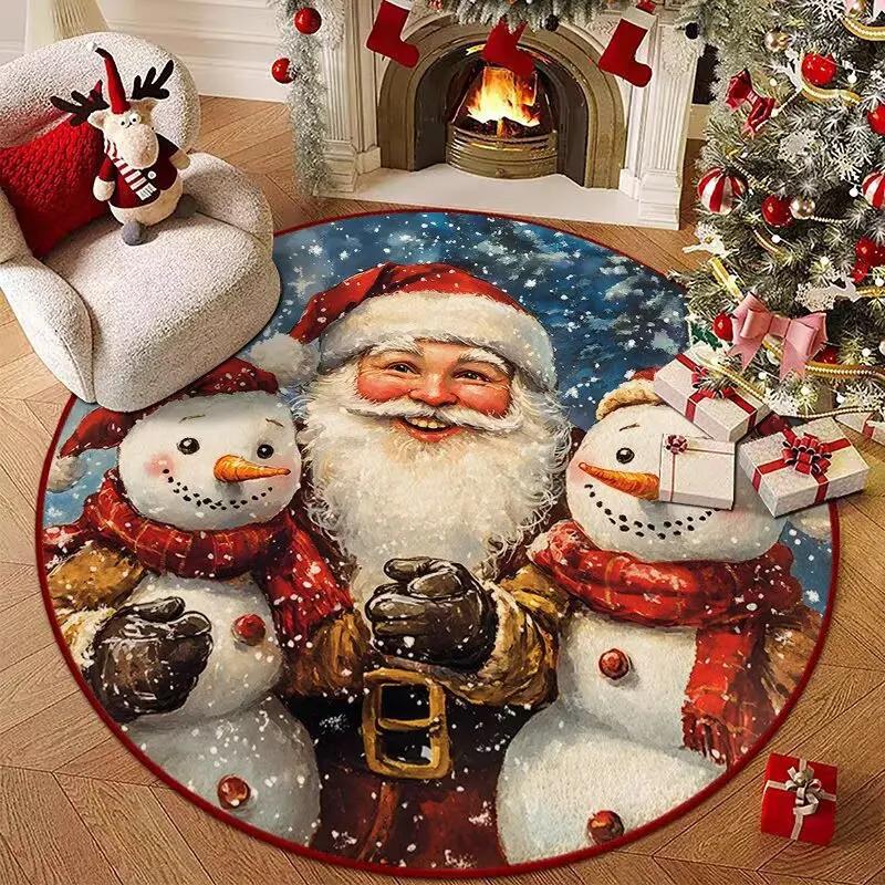 Christmas Joyful Santa Claus Snowman Carpet Mat Round Red Gift Boxes Rug Festive Non-slip Home Decoration for Living Room Carpet