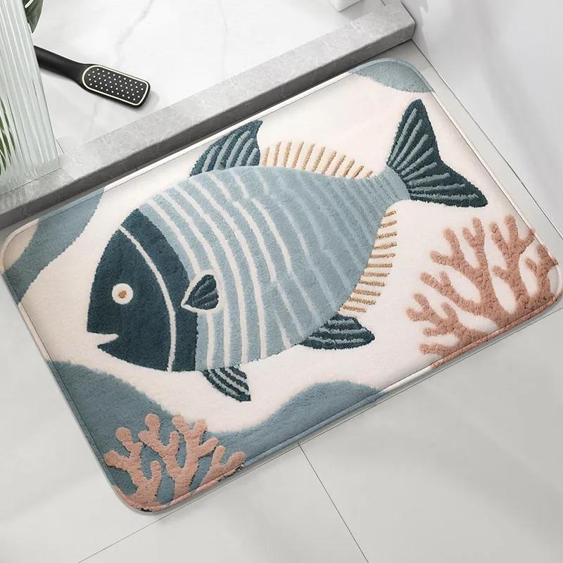 Flannel Material Floor Mat Household Absorbent Foot Mat Modern Mat Bathroom Small Carpet Machine Washable Retro Home Decorative