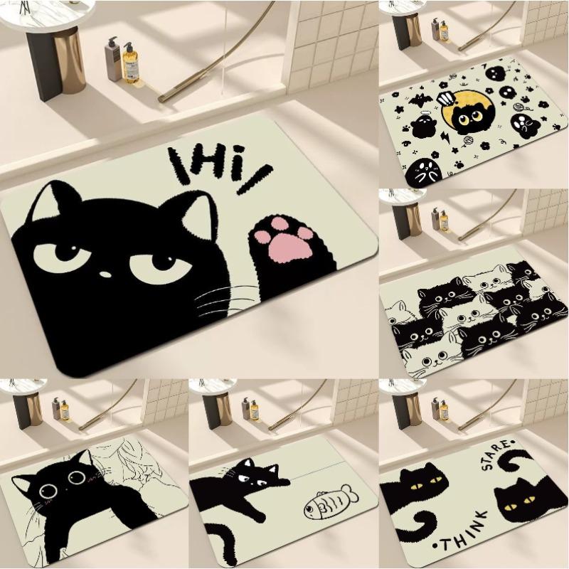 Welcome Door Mat Living Room Bedroom Black Cartoon Cat Decoration Carpet Wear-resistant Dirt Resistant Rug Home Decoration