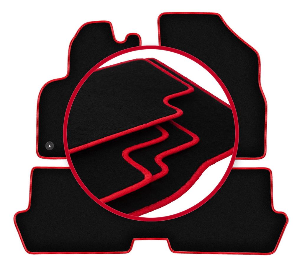 Velours-Fußmatten mit rotem Rand für: Peugeot 3008 I Minivan (2009-2016)