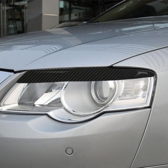 Pair Car Carbon Fiber Headlight Eyebrow Trim Cover For Passat B6 2005-2010