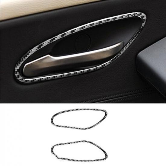 2Pcs Carbon Fiber Interior Front Door Handle Cover Trim For BMW 6 Series E63 E64