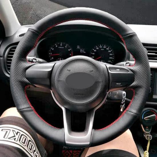 Perforated Leather Steering Wheel Cover Trim For Kia Rio K2 Picanto 3 2017-2024