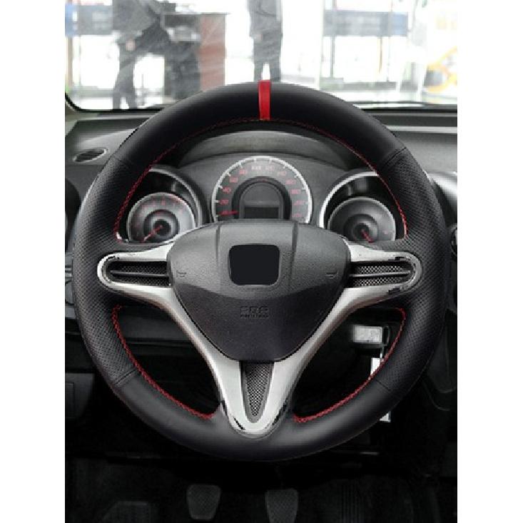 Black Leather Red Bar Steering Wheel Cover For Honda Fit Jazz City 09-13 ight