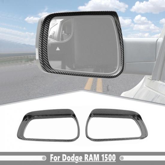 For Dodge Ram 1500 19-25 Carbon Rearview Mirror Rain Eyebrow Guard Trim Frame 2P